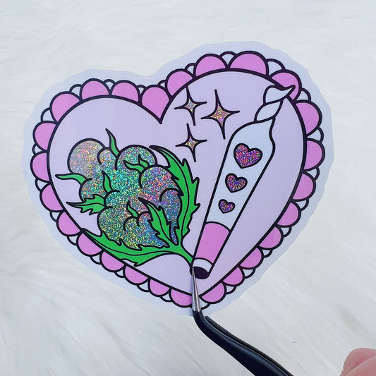 Best Buds Canna Heart Vinyl Sticker Die Cut | Glitter Holographic Foiled