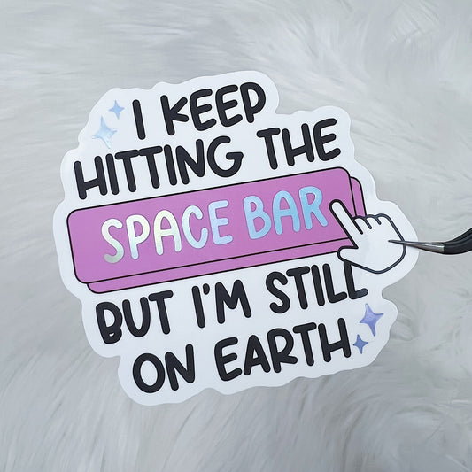 I Keep Hitting The Space Bar But I'm Still On Earth Vinyl Sticker Die Cut | Holographic Foiled