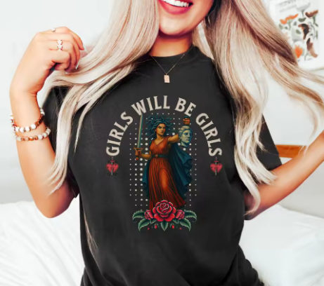 Girls Will Be Girls—and this cotton tee celebrates every version of that. Perfect for anyone who embraces their authentic self without apology, this playful shirt is a nod to friendship, fun, and the freedom to be exactly who you are. Designed in a comfortable loose fit, it's ideal for casual days when you want to wear your confidence with style. Soft and empowering, it's your lighthearted declaration that being a girl means endless possibilities, inside jokes, and living life on your own terms.