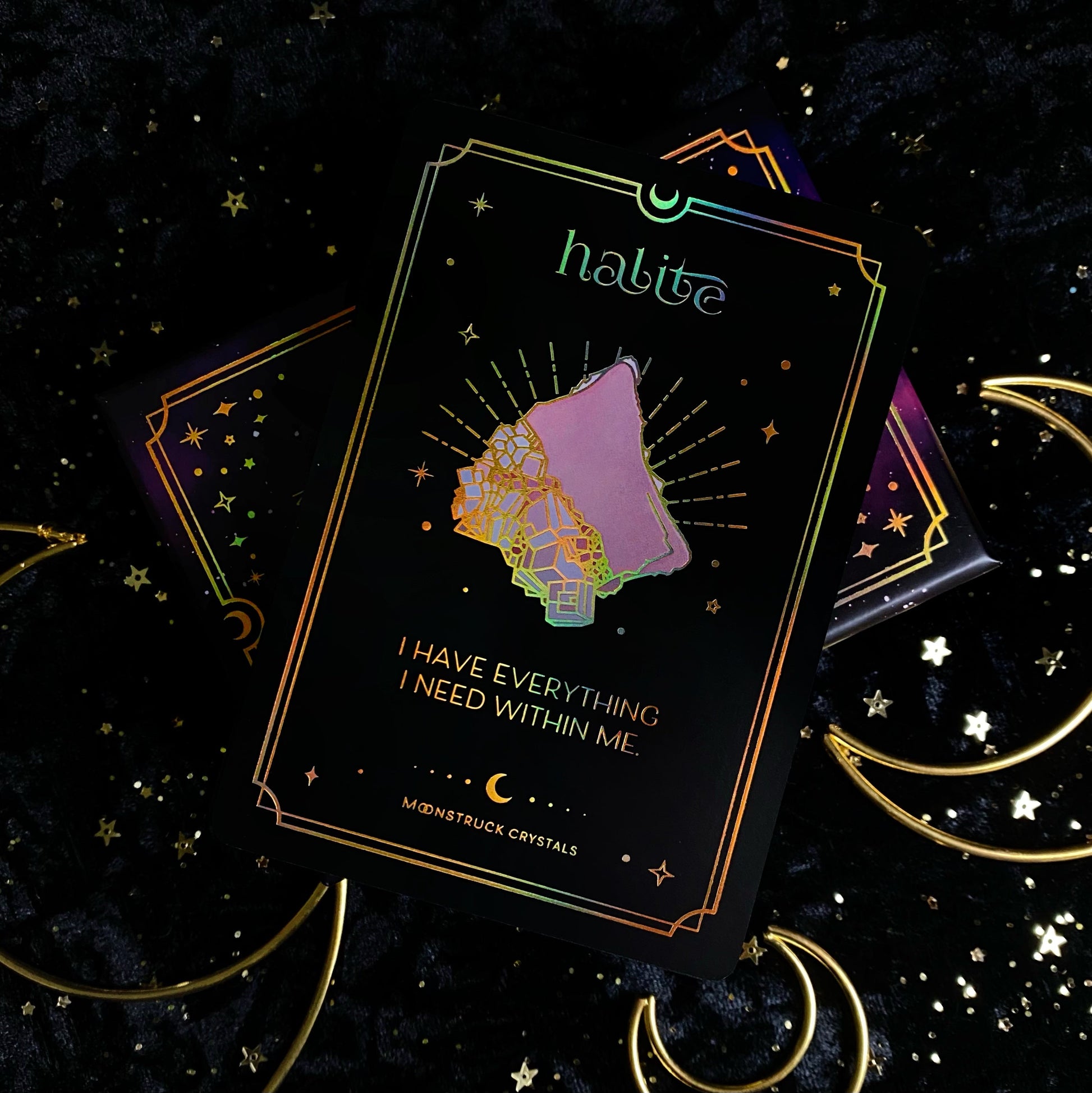 includes set of 60 crystal affirmation cards in a box + crystal properties booklet.