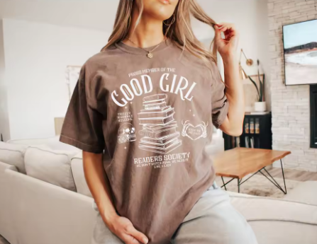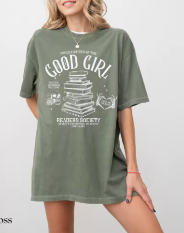 Welcome to the Good Girl Readers Society where proper manners meet passionate page-turning. This charming cotton tee celebrates readers who appreciate the finer things in literature—think cozy mysteries, heartwarming romances, and stories that leave you feeling uplifted. Perfect for anyone who believes in the power of wholesome narratives and feel-good endings, it's your invitation to a community of refined literary taste. Soft and comfortable in a relaxed loose fit, it's your elegant declaration that being a good girl never means being boring.