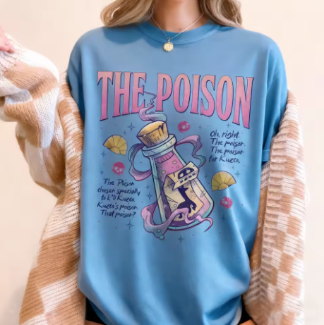 Embrace your dark side with The Poison T-Shirt. This edgy cotton tee celebrates those who aren't afraid to flirt with danger, whether through morally grey characters, dark romance, or simply having a wickedly sharp sense of humor. Designed in a comfortable loose fit, it's perfect for anyone who knows that the best things in life come with a little bite. Wear it with confidence—because sometimes being toxic is just being honest.