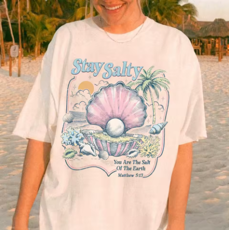 Keep your attitude sharp with the Stay Salty T-Shirt. This cheeky cotton tee celebrates those who aren't afraid to speak their mind and keep things real, complete with a fun clam-inspired twist. Cut in a relaxed loose fit for all-day comfort, it's perfect for anyone with a sarcastic streak and a love of ocean vibes. Soft, witty, and ready to make waves—because life's too short to be bland.
